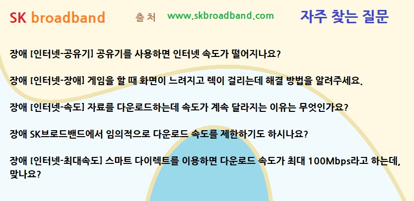 [sk 브로드밴드] 장애 [인터넷-공유기] 공유기를 사용하면 인터넷 속도가 떨어지나요?