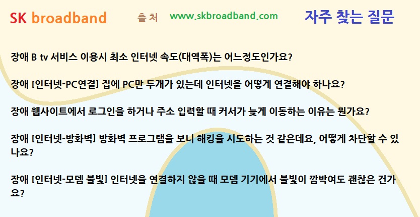 [sk 브로드밴드] 장애 B tv 서비스 이용시 최소 인터넷 속도(대역폭)는 어느정도인가요?