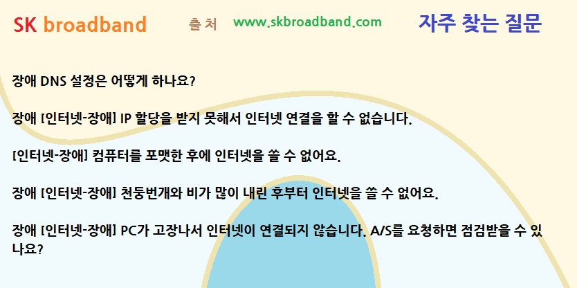 [sk 브로드밴드] 장애 [인터넷-장애] PC가 고장나서 인터넷이 연결되지 않습니다. A/S를 요쳥하면 점검받을 수 있나요?