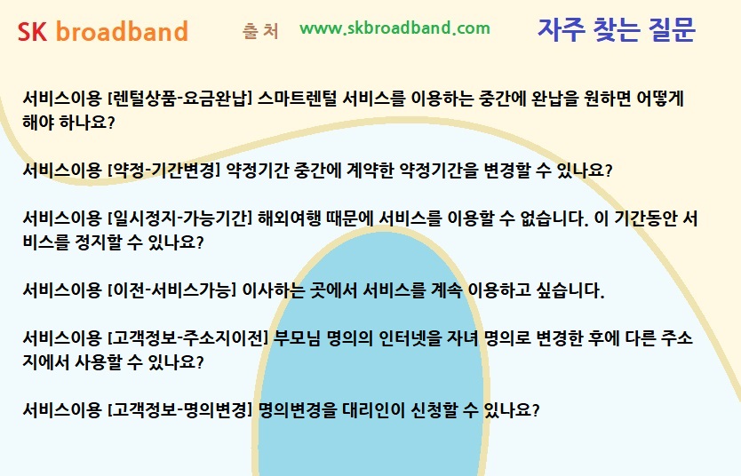[SK broadband TV/인터넷/전화: FAQ] 서비스이용 [고객정보-명의변경] 명의변경을 대리인이 신청할 수 있나요?