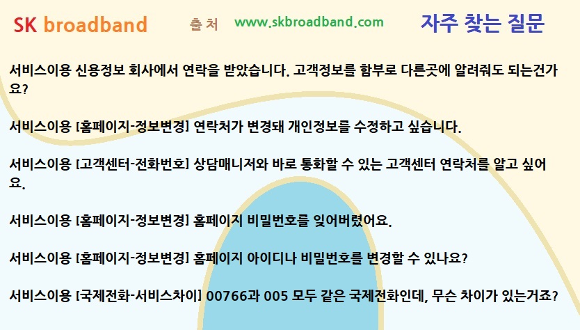 [SK broadband TV/인터넷/전화] 서비스이용 신용정보 회사에서 연락을 받았습니다. 고객정보를 함부로 다른곳에 알려줘도 되는건가요?