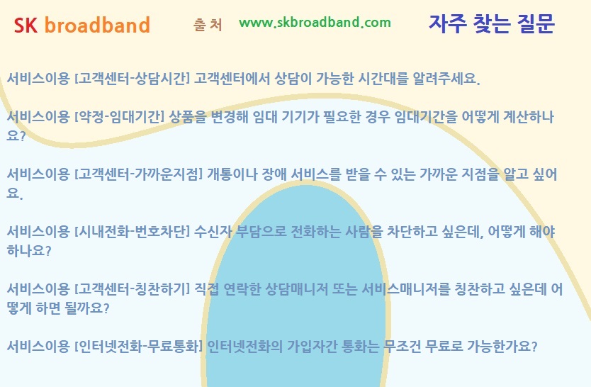 [SK 브로드밴드 FAQ] 서비스이용 [고객센터-상담시간] 고객센터에서 상담이 가능한 시간대를 알려주세요.