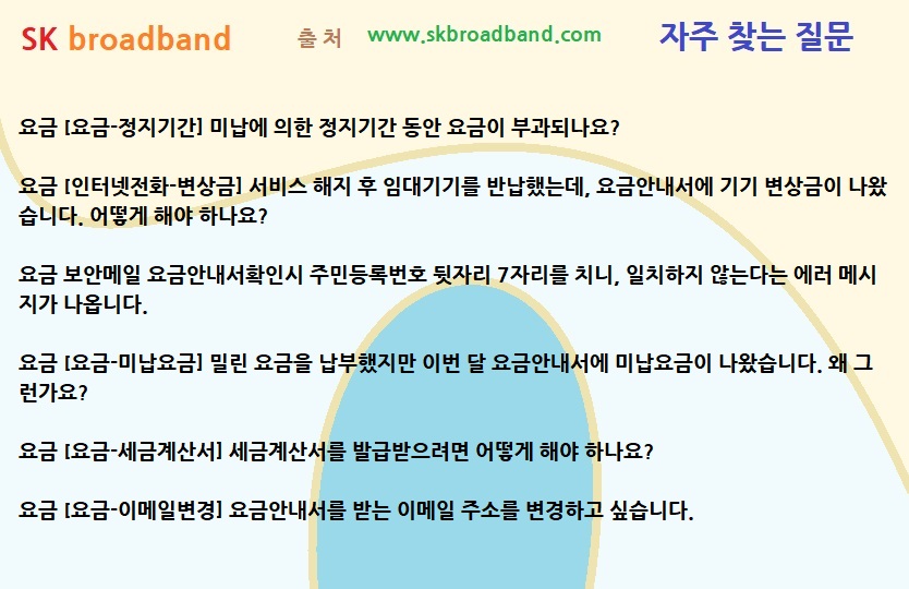 [SK 브로드밴드 FAQ] 요금 [요금-이메일변경] 요금안내서를 받는 이메일 주소를 변경하고 싶습니다.