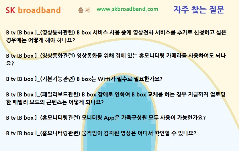 [SK broadband FAQ] B tv [B box ]_(영상통화관련) 영상통화를 위해 집에 있는 홈모니터링 카메라를 사용하여도 되나요?
